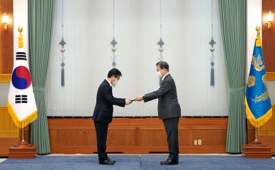 변창흠 국토교통부 장관에게 임명장 수여하는 문재인 대통령
