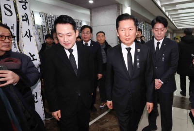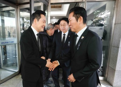장동혁 국민의힘 대표 배웅하는 정청래 더불어민주당 대표