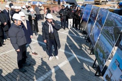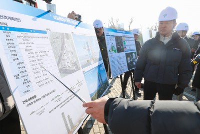 성수동 삼표레미콘 부지 찾아 브리핑 듣는 오세훈 서울시장