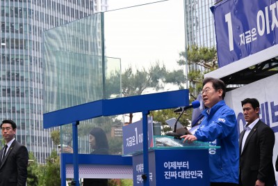'방탄유리' 연단서 유세한 이재명...대선 후보 사상 최초