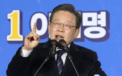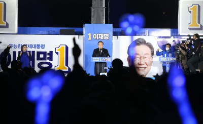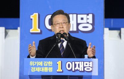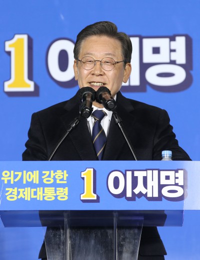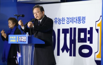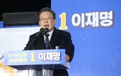 지지호소하는 이재명 더불어민주당 대통령 후보... 강동 유세 현장