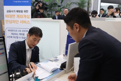 이복현 금감원장, 비대면 계좌개설 안심차단 서비스 서류 작성