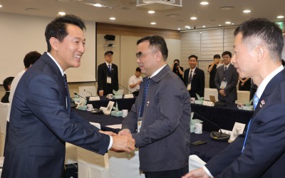 해외 독립유공자 후손 초청 간담회 참석자와 악수하는 오세훈 서울시장