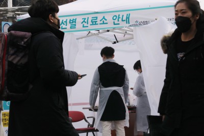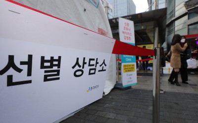 명동역 6번출구 앞에 설치된 신종 코로나바이러스 선별진료소
