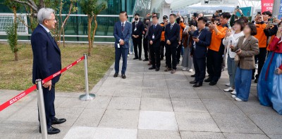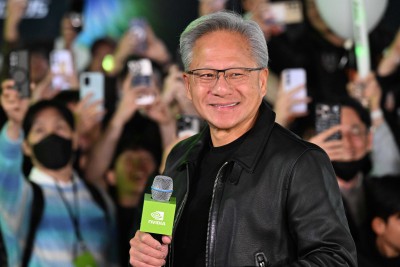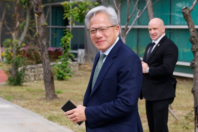 시민들에게 밝은 미소로 인사하는 젠슨 황 엔비디아 CEO