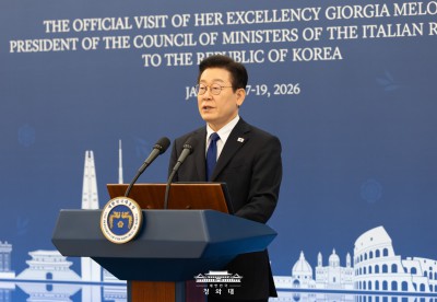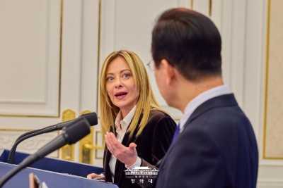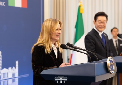 공동 언론발표 하는 이재명 대통령 - 조르자 멜로니 이탈리아 총리