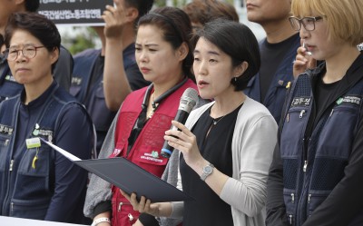 [사진] 건설현장 여성 차별에 대해 발언하는 이현정 씨