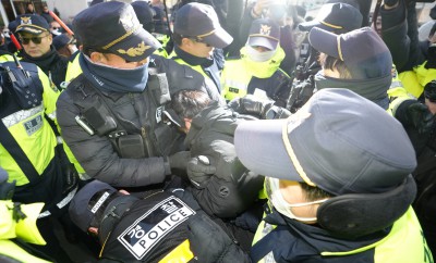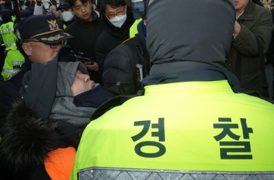 관저 앞 연좌농성 윤 대통령 지지자들, 경찰에 강제해산