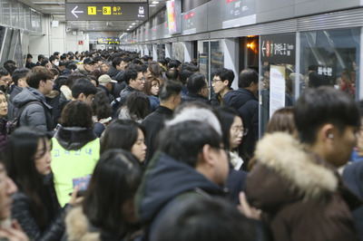 [뉴스핌 포토] '지옥철' 9호선 부분 파업 돌입, '열차는 언제 오나…'