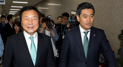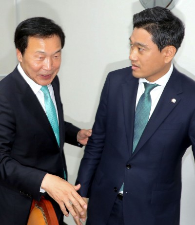 [사진] 회의실 이동하는 손학규 당대표-오신환 원내대표