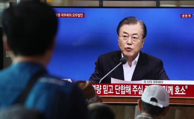 [사진] 문재인 대통령, '다시는 일본에 지지 않을 것!'