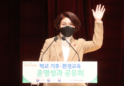 학교 기후·환경교육 운영성과 공유회, 인사말하는 한정애 장관
