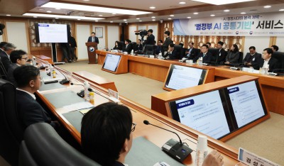 범정부 AI 공통기반 서비스 개시 기념식 참석하는 윤호중 장관