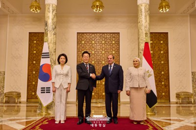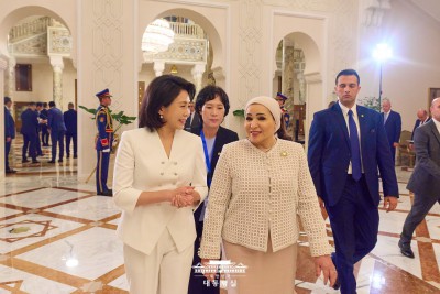 대통령궁에서 대화 나누는 김혜경 - 인티사르 알시시 여사