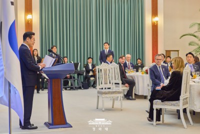 조르자 멜로니 총리 환영 만찬, 인사말하는 이재명 대통령