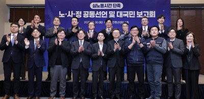 노·사·정 실노동시간 단축 합의서 자축하는 김영훈 고용노동부장관