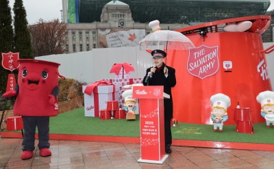 자선냄비 전달식, 인사말하는 김병윤 한국 구세군 사령관