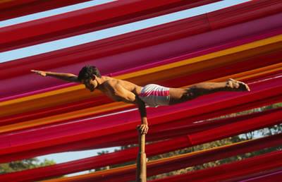 [사진] 印 대학축제서 '전통 체조' 선보이는 남성