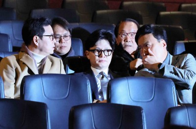 한동훈 전 대표, 정성국-박정훈-진종오 의원과 함께 영화 시사회 참석