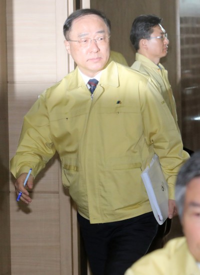 코로나19 대응 중대본 회의 참석하는 성윤모 산자부 장관