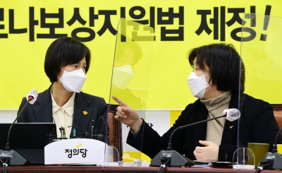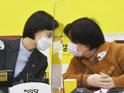 대화 나누는 강은미 비대위원장 - 배복주 젠더인권본부장