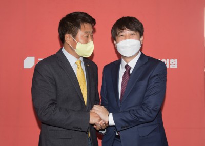 서로의 손 잡은 이준석 국민의힘 - 여영국 정의당 대표