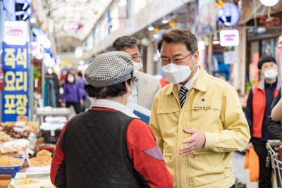 불경기속 고생하는 상인에게 설 인사하는 오세훈 서울시장