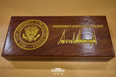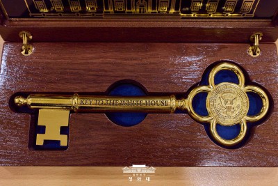 도널드 트럼프 미국 대통령에게 '백악관 황금열쇠' 선물받은 이재명 대통령