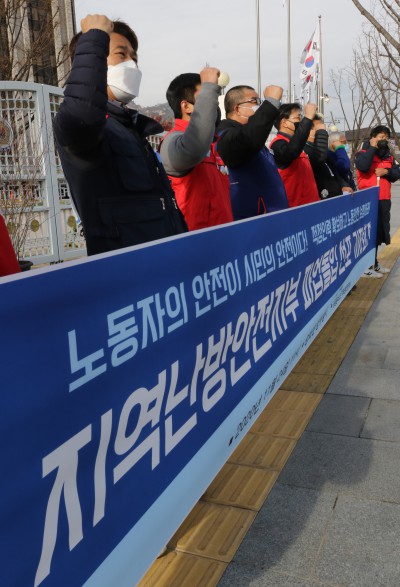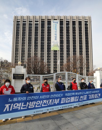정부서울청사 앞서 열린 지역난방안전지부 파업돌입 선포 기자회견