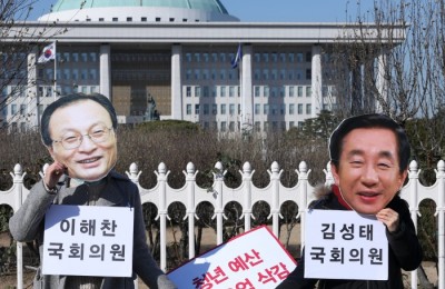 [사진] 우리미래 '이해찬-김성태 지역구 예산 증액 규탄'