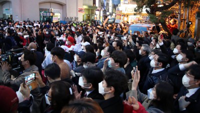 [영상] 나경원, 눈물의 출정식 "정부가 씌운 가짜 프레임 이겨낼 것"