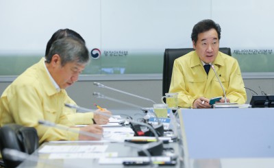호우피해 및 태풍 대처상황 점검회의 주재하는 정세균 총리