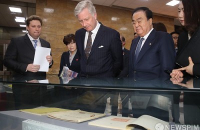 [사진] 한-벨기에 특별전 관람하는 필립 벨기에 국왕-문희상 의장