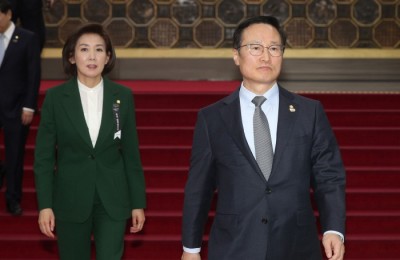 [사진] 필립 벨기에 국왕 방문 행사 참여하는 홍영표-나경원 원내대표