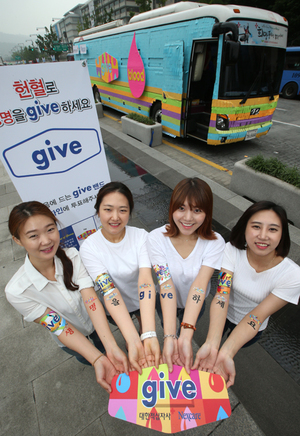 [뉴스핌 포토] '이색 헌혈버스에서 생명을 기브(give) 하세요!'