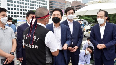 언론중재법 범국민 필리버스터 현장 방문한 김기현 원내대표
