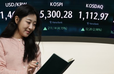 코스피 4.05% 상승...달러/원 환율 0.46% 하락 출발
