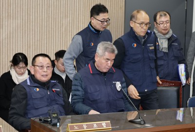 제2차 사후조정회의 참석한 박점곤 서울시버스노동조합 위원장과 노조위원들