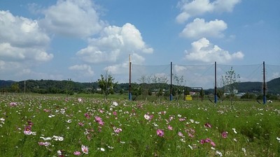 [사진] 합천 야구장에 활짝 핀 가을 전령 '코스모스'
