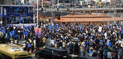 거북선 옆에서 유세 여는 이재명 더불어민주당 대선 후보