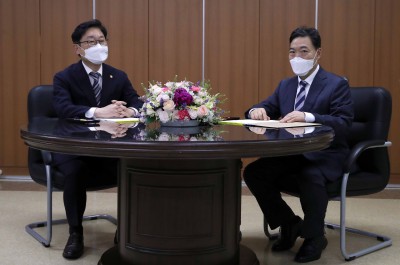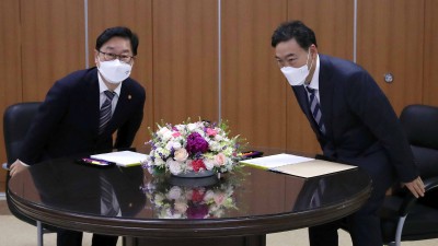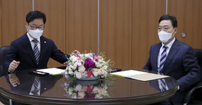 '검찰 인사 협의' 고검에서 만난 박범계 법무부 장관과 김오수 검찰총장