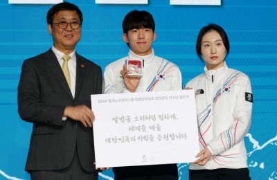 2026 밀라노 동계올림픽 선수단 결단식 참석한 스피드스케이팅 국가대표 정재원