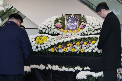 '국민배우' 고(故) 안성기 빈소에 놓여진 금관문화훈장