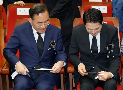 고(故) 김영삼 전 대통령 서거 10주기 추모식 참석한 강훈식-주호영-장동혁-윤호중