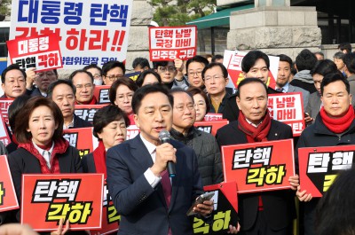 국민의힘 의원들, 헌재 앞에서 대통령 탄핵 각하 요구 기자회견