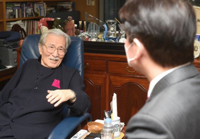 안철수 대선 후보와 대화 나누는 김동길 연세대 명예교수