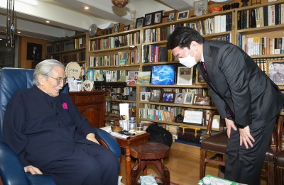 김동길 연세대 명예교수 새해 인사 나선 안철수 대선 후보