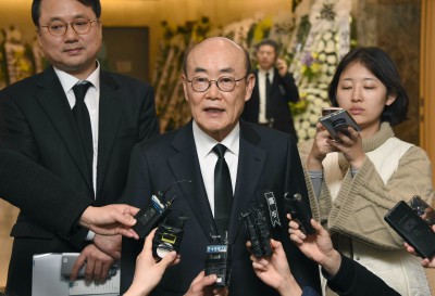 [사진] 취재진 질문에 답변하는 김태구 전 대우자동차 회장