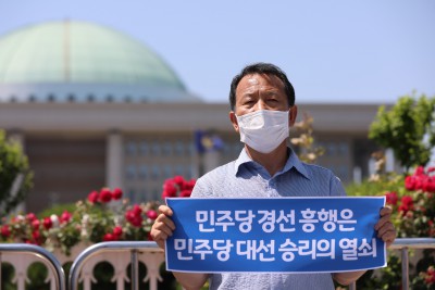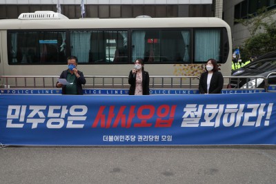 경선 무표효 처리 관련 기자회견 갖는 더불어민주당 당원들
