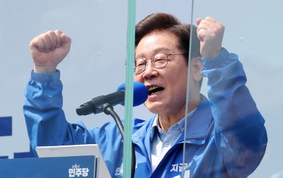 '대선 승리를 위해' 주먹 쥔 이재명 더불어민주당 대통령 후보
